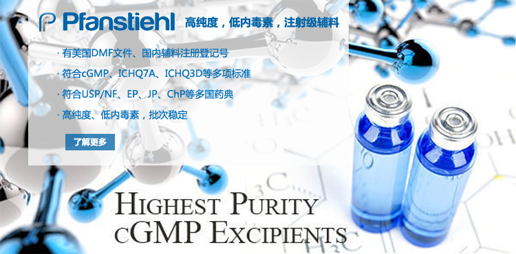 “熱烈祝賀Pfanstiehl的注射級甘氨酸Glycine(G-140)喜獲CDE登記號F20250000403, 這是Pfanstiehl產品獲得的第18個CDE登記號!”甘氨酸在醫藥輔料制劑中應用廣泛,, 可作為緩沖劑,增溶劑,穩定劑等,具有諸多優勢。Pfanstiehl秉承一貫高品質理念,為滿足全球生物制藥行業對于高品質甘氨酸的需求,隆重推出的注射級甘氨酸Glycine (G-140), 具有超高純度,超低內毒素,超低金屬殘留的特點,單獨檢測29種金屬離子,并且新增DNA,RNA,DNA酶,RNA酶和脂肪酶,亞硝酸鹽等多項質量指標的檢測,符合多國藥典規定(USP, EP, BP, JPE, ChP),可用于生物治療性藥物和疫苗的生產。產品信息:· 產品名稱:Glycine, High Purity, Low Endotoxin, Low Metals, USP, EP, BP, JPE, ChP (G-140)· 中文名稱:甘氨酸· 分子式:C2H5NO2· 分子量:75.07 g / mol· CAS號:56-40-6· 產品貨號:G-140產品特點: · 超高純度,超低內毒素,超低微生物含量,超低金屬雜質殘留· 質量指標新增DNA,RNA,DNA酶,RNA酶,脂肪酶和亞硝酸鹽檢測· 符合多國藥典:USP, EP, BP, JPE, ChP· 符合ICH Q3D標準· 符合GMP標準· 已獲DMF和CDE登記號 產品應用:· 緩沖劑· 穩定劑· 增溶劑如果您對Pfanstiehl注射級別Glycine G-140感興趣,歡迎聯系Pfanstiehl 中國區代理商北京西美杰科技有限公司獲得如下詳細的產品概況說明文件和測試樣品。Pfanstiehl Inc.最新產品系列如下,歡迎聯系北京西美杰科技有限公司獲取100g裝免費樣品。北京西美杰科技有限公司為Pfanstiehl中國代理,為客戶提供完善的技術支持與售后服務。歡迎撥打西美杰客服電話400-050-4006或者登陸網站www_xmjsci_com.jsytz.com了解更多信息。 更多>